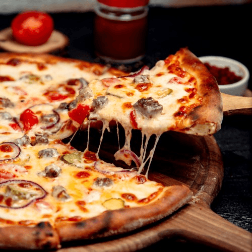 Served with tomatoes, black olives, mushrooms, onions & peppers