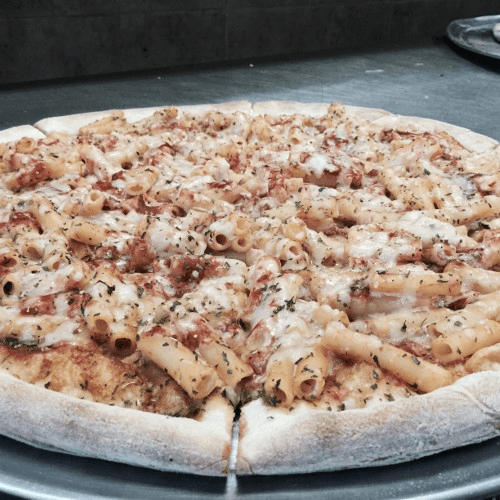 Ziti with mozzarella and tomato sauce baked to perfection in our oven